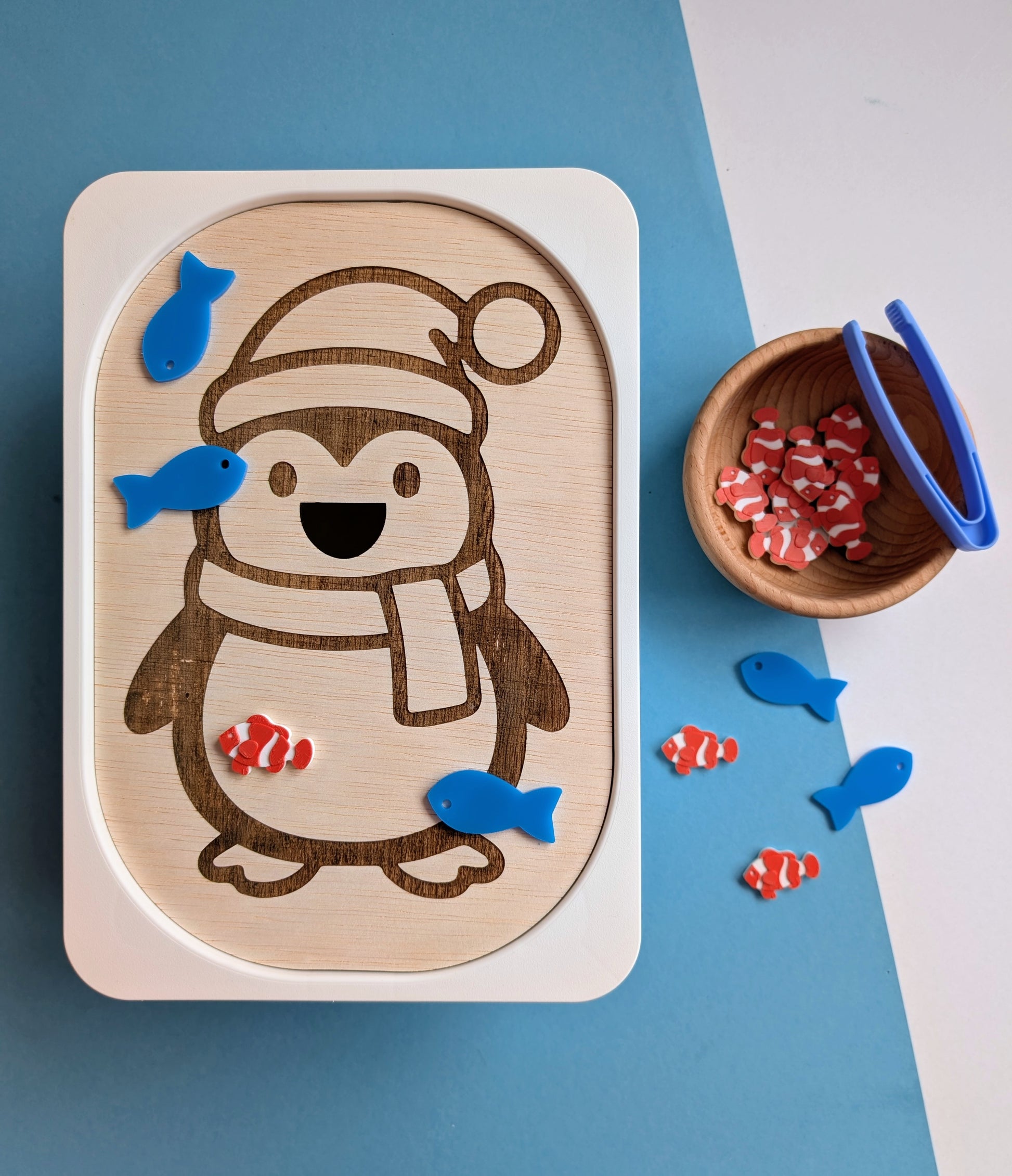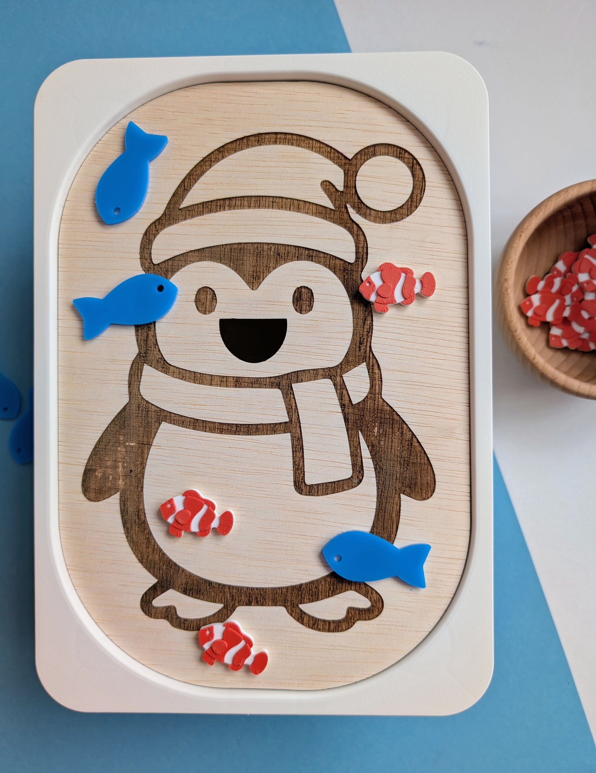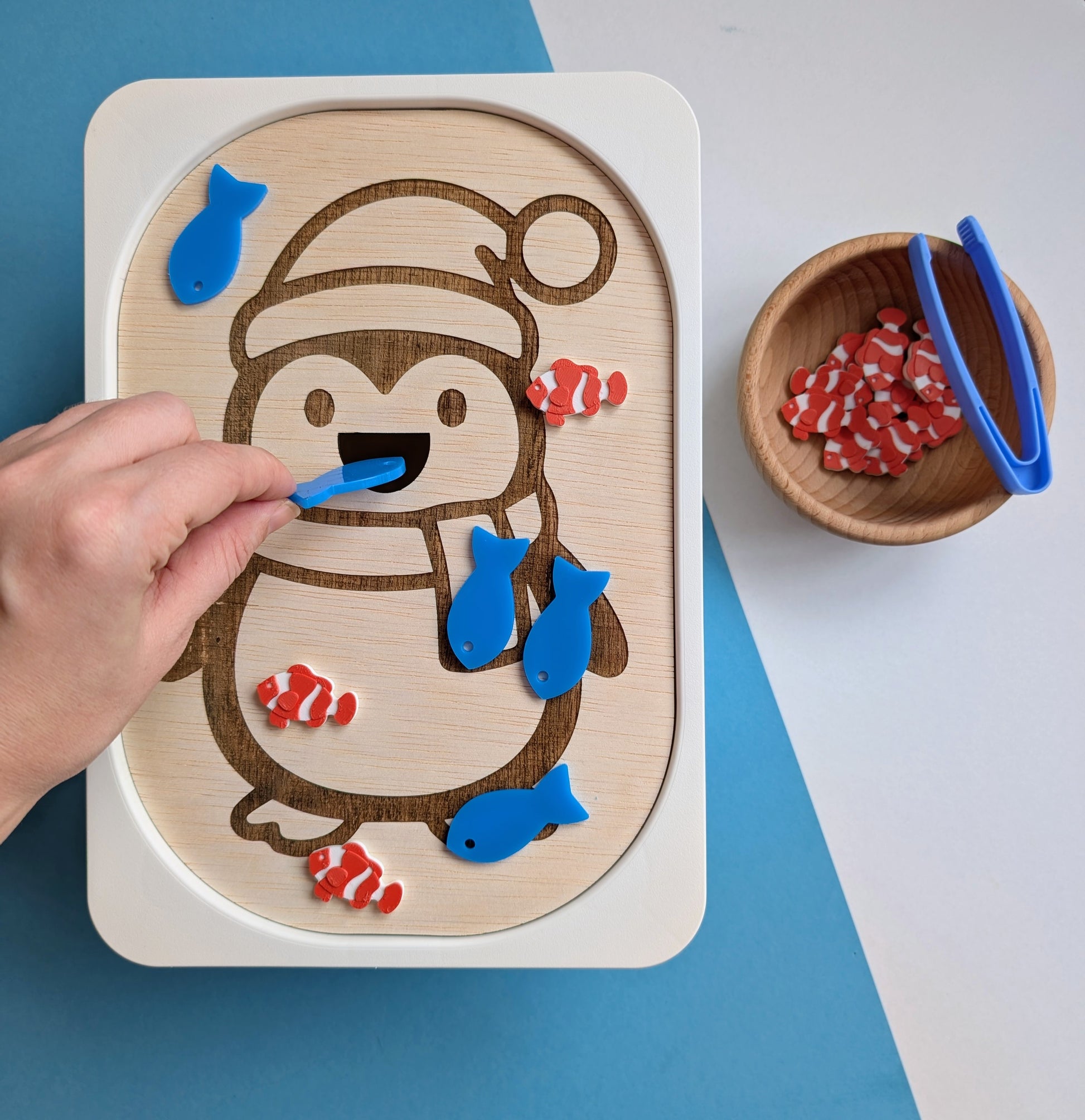 Kreatív foglalkoztató tábla - Etesd meg az éhes pingvint